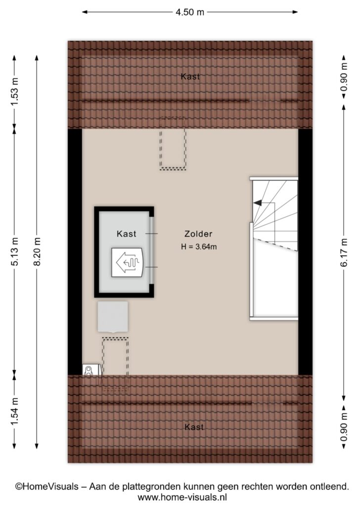 Via een vaste trap heb je toegang tot de zolder. Deze verdieping is een open ruimte voorzien van twee dakramen en met een technische ruimte met de opstelplaats van de warmtepomp en mechanische ventilatie. Verder bevindt zich hier de aansluiting voor de wasmachine.